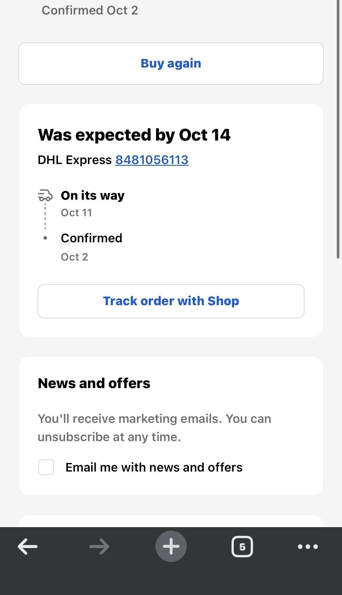 I ordered over 2 weeks ago and I still have not received my package. My package is currently5 days late and the seller has not gotten back to me the last update I received was 11th October 2025 it’s now the 19th and I cannot get in contact with anyone